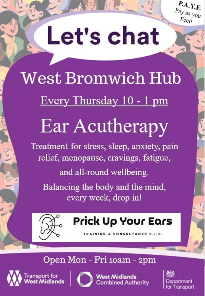 Weekly Ear Acutherapy at the Let's Chat Hub at West Bromwich Bus Station, B70 8PP